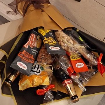 Objednala jsem slaný koš s klobáskami, whisky a sýrem pro syna. Syn byl nadšen, že má vše dobré pohromadě. :-)